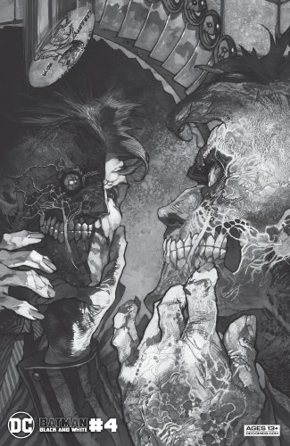 Gotham City’s past, present, and future all come together to haunt the Dark Knight in exhilarating new stories from some of comics’ most noted luminaries as Batman Black & White continues! Eisner Award-winning writer Chip Zdarsky (Daredevil, Stillwater) and fan-favorite artist Nick Bradshaw (Wolverine & the X-Men, Spidey) team up for a story that brings Poison Ivy to the front door of Wayne Manor to demand ecological responsibility from Bruce Wayne! Superstar writer Joshua Williamson (The Flash, Batman/Superman, Justice League vs. Suicide Squad) pairs with superstar artist Riley Rossmo (Harley Quinn, Dark Nights: Death Metal: Robin King, Martian Manhunter) for a horrific night in Gotham as a new villain emerges, as seen through the eyes of Batman himself. Eisner Award-winning writer/artist Becky Cloonan (Wonder Woman, Gotham Academy) concocts a murder mystery for Batman to solve set at a circus, featuring art by legendary artist Terry Dodson (Wonder Woman, X-Men, Adventureman). Red-hot cartoonist Daniel Warren Johnson puts Batman at the mercy of Two-Face. Batman will have to remember the words of Alfred Pennyworth if he’s going to make it through this ordeal alive. Karl Kerschl, artist of Gotham Academy, writes and draws a tale of Batman investigating the occult mysteries of Gotham City’s past with his new Robin...Gotham Academy’s Maps Mizoguchi?!