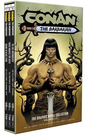 COLLECTING THE FIRST YEAR OF THE TITAN/HEROIC CONAN LEGACY! THE FIRST THREE ACTION-PACKED VOLUMES OF CONAN THE BARBARIAN’S NEW ERA OF COMICS COLLECTED FOR THE FIRST TIME. Armed with just his wits and his sword, Conan sets out for the first time from his beloved Cimmeria and after adventures on the high seas, he returns to shore to find himself haunted by his memories of Bêlit, captain of the Tigress and Queen of the Black Coast. Then, sent back in time to the Thurian Age, Conan battles terrifying creatures and meets Kull the Conqueror, a barbarian-king as strong as himself! Collecting: Conan the Barbarian Vol. 1-3, plus 3 Exclusive Art Cards!