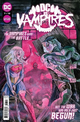 The nightmarish second arc begins! The Earth is now cloaked in darkness as the victorious vampire empire has taken full control. Pockets of humanity can still be found, and they struggle to live but hope fades with every darker day. The leaders of the last surviving resistance force—Green Arrow, Batgirl, and Supergirl—hatch a desperate plan to save the world…or die trying!