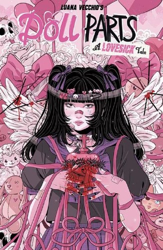 A twisted new entry in the LOVESICK universe from Russ Manning Award-winner LUANA VECCHIO. Twelve-year-old Madeleine dreads the idea of growing up. She fears becoming like the cruel older girls or facing the contempt of her devoutly religious mother. But most of all, she doesn’t want to become a target for the monsters that are out there, hiding in plain sight. However, a stomach-churning discovery forces Madeleine to confront the harsh reality that growing up isn’t a choice—it’s survival. LUANA VECCHIO, winner of the 2022 Russ Manning Promising Newcomer Award, invites you back into the infernal world of LOVESICK to uncover the tragic origins of the dark web’s most infamous dominatrix. Part coming-of-age and part horror-thriller, DOLL PARTS is a must-read for both seasoned fans and newcomers to the twisted universe of LOVESICK, where youth and innocence are nothing more than meat for the cruel. Collects DOLL PARTS #1-4