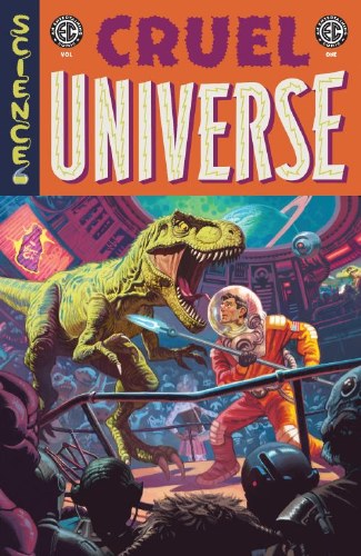 Compelled to OBLIVION, driven to ENTROPY, all life in our cosmos can only end in one place: COMPLETE ANNIHILATION! For the first time in 70 years, the limitless fury of EC Comics rages back to life to shred the very fabric of the universe itself—and wrench bizarre tales of time and space into our dimensional plane! Our guides across this riveting introduction to a cosmic maelstrom of strange extraterrestrial entities, malevolent scientists, and terrifying technological catastrophe? Learn to fear the void with the irradiated imaginations of writers Corinna Bechko (Green Lantern: Earth One), Christopher Cantwell (Thanos), Chris Condon (Ultimate Wolverine), Matt Kindt (BRZRKR, Mind MGMT), Stephanie Phillips (Phoenix), Ben H. Winters (The Last Policeman), and more as they collide with the wondrously destructive visions of artists Jonathan Case (Green River Killer), Kano (Gotham Central), David Lapham (Stray Bullets), Alison Sampson (Department of Truth), Artyom Topilin (I Hate This Place), Caitlin Yarsky (Black Hammer: Reborn), and many more! The unpredictable return of EC Comics continues here with the quantum comics event of the millennium! Galaxies will collapse. Space-time will be distorted. And your very will to exist, too, shall be broken. . . . Just remember: It’s all in the name of SCIENCE! Collecting Cruel Universe #1–5.