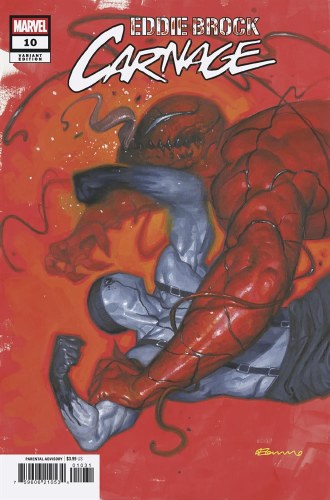 THE DEATH OF CARNAGE?! Eddie and Carnage's investigation has hardly gone as planned, leaving them at the whims of its mysterious proprietor - a symbiote host Eddie remembers from his days as the King in Black. She has the key to killing Carnage, but the price of ridding the world of him once and for all is costly. Will Eddie be willing to pay it, or will the symbiote live to kill another day? RATED PARENTAL ADVISORY.