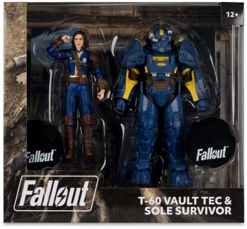 The Fallout 4 T-60 Vault Tec and Sole Survivor 7-Inch Scale Action Figure 2-Pack - Exclusive is based on Bethesda's Fallout 4 video game series! The figures are designed with ultra articulation with up to 22 moving parts for full range of posing. Included are 2x collectible art cards and 2x display bases!