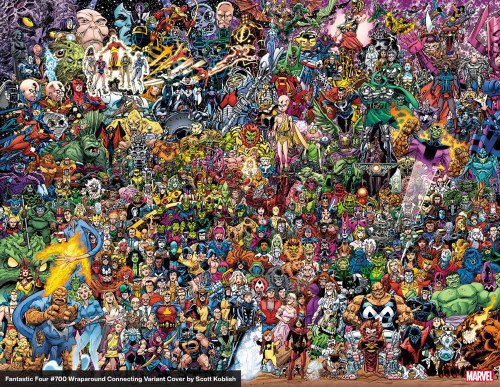 COLOSSAL ISSUE #700! FANTASTIC FOUR #7 is also FANTASTIC FOUR #700, which means we're ABSOLUTELY going huge. It's an over-sized spectacular as the Fantastic Four reach their new home - not knowing that a mysterious threat has made it there first! As their knowledge of LANGUAGE ITSELF begins to melt from their minds, the Four are in disarray as their existence hangs in the balance... ...and the greatest villain of all time finally seals their DOOM. Rated T+