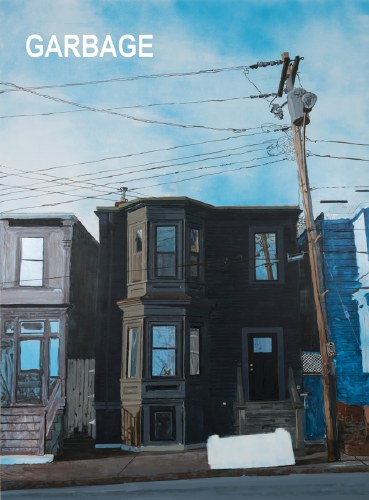Garbage is an architectural-scale series of panels that transform a gallery into a comic book. Each "page" of the story pops with colour off the wall, unfolding using the common tropes of comic books. Taken together the paintings tell the story of neighbours in Halifax’s North End and a mysterious couch which shows up one morning on the narrator’s front curb. As the narrator confronts his neighbours, asking where it came from, he gains insight into their lives as well as his own. Garbage collects these paintings into a graphic novel with a commentary by curator Robin Metcalfe and introduction by comics academic Benjamin Woo.