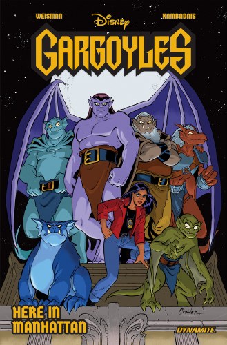 The first collection of Gargoyles creator GREG WEISMANs all-new tales set in the world of his beloved animated show is finally here! Collecting issues #1-6 of the acclaimed series written by Weisman and illustrated by GEORGE KAMBADAIS, Gargoyles: Here in Manhattan reintroduces the Manhattan Clan, a Gargoyles family newly dedicated to their mission of defending humanity in modern-day New York. But even though their commitment is strong, their bonds are about to be tested to the limit when nefarious factions from all across the world attempt to steal that rarest, most precious of possessions... an unhatched Gargoyle egg! To celebrate this historic publication, Dynamite Entertainment is proud to present three special editions with covers by the legendary original Gargoyles comics series artist AMANDA CONNER and new series cover superstar DAVID NAKAYAMA: