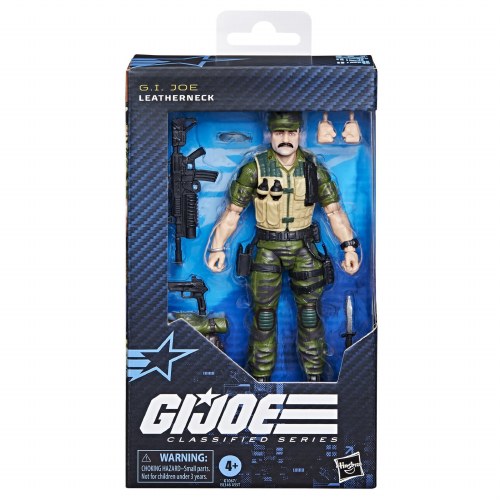 New to the G.I. Joe Classified Series line, Leatherneck comes ready for adventure, with multiple points of articulation for high poseability. This Leatherneck figure contains 8 character-inspired accessory pieces including sunglasses, alternate fist hands, knife, rucksack, and weapon accessories as well as his removable utility cover. Wendell Metzger was the hardest gunny that ever slogged through the mud of base camp, a true leatherneck worthy of the name. Leatherneck is uncouth, opinionated, and overbearing. And he has no patience at all with the indecisive, the lazy, and the dishonest. Not a man you can like, but one you can trust.
