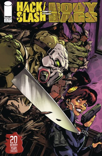With Panda trapped inside the School for the Contractual Arts with a slasher, it's up to Cassie Hack to save her @$$. But Panda, newly trained in bagging bodies, ain't gonna take any $% from some spooky *&*(%&...especially when she's got classmates to impress! And, Vlad is sent after Mack Delgado, aka Clownface. But with Mack convinced an assassin is after him, machetes are going to fly. The epic re-introduction of JASON PEARSON's cult heroes continues by the original creators of HACK/SLASH!