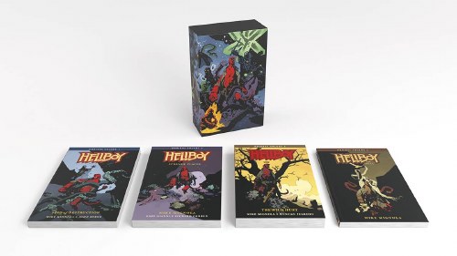 Previously available only as individual volumes, all four Hellboy series omnibuses (Seed of Destruction; Strange Places; The Wild Hunt; and Hellboy in Hell) are available together in a specially designed collection! Featuring an exclusive box with new art by Mike Mignola, expertly colored by Dave Stewart, this set is a marvel both inside and out. Four Hellboy omnibus collections in a special slipcase featuring new art by Mignola!