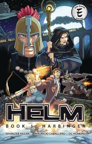 It is an age of steamworks and sorcery, magick and machinery, rancor and revolution. Helm is an Eisner-nominated comic series set in an ancient fantasy world that has undergone an industrial revolution in the past 300 years. Racism and riots run rampant, ''magick-makers'' are mercilessly hunted, the elves have all but been eradicated, and rumors of rebellion stir amongst the half-breeds and downtrodden peoples of the Commonwealth. Pursued by the merciless Legion, the mysterious witch Luna Lumere seeks out Eldrick Spellsong, Jr., a college dropout who unknowingly holds the key to unlocking an age-old secret. Together, along with a sundry gang of adventurers, villains, and scoundrels, they will traverse the dark and dangerous world of Helm, in search of the legendary Bastard King, and rouse him from his slumber.