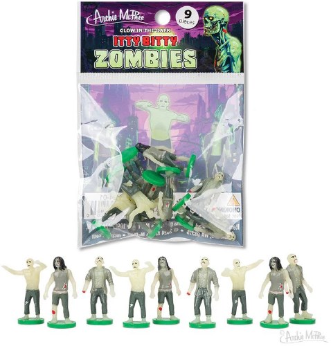 Use Itty Bitty Zombies to carry out your own itty bitty apocalypse. What happens when a zombie bites itty bitty people? Itty Bitty Zombies! These glow-in-the-dark, 1-5/16" tall, soft vinyl un-big undead lurkers come in three different styles.