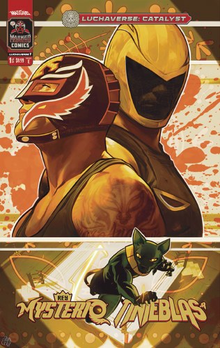 Cover by Francesco Tomaselli who has worked with publishers such as Image Comics, BOOM! Studios, Source Point Press, ABLAZE Publishing, Heavy Metal Magazine, Scout Comics and many more. It all starts here with the three-part launch of the epic new shared Luchaverse! The world's most famous luchadores battle in the ring by day, and serve humanity as monster hunters and world protectors by night. In this series, Masked Republic Comics and Massive Publishing bring back the glory and tradition of real-life lucha libre stars in comic books, setting the stage for a new era filled with epic cross-genre action in a shared universe. The first installment of the Luchaverse series is an action-packed double feature that is a perfect entry point for both long time fans of luchadores and new readers looking for genre bending adventure and universe altering mystery. First, Rey Mysterio, the world's most recognizable luchador discovers his legacy outside of the ring as the next in line to take on a great evil prophesied to return and plunge the world into darkness... Next, as heir to his own legacy as lead luchador monster hunter, Tinieblas Jr. takes on the legions of the damned and all manner of creatures that go bump in the night while trying to prevent ancient forces of the monster realm from conquering the universe!