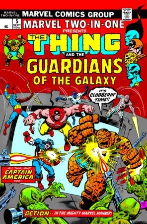 Read the Thing's first headlining series before his MCU debut! Whether it's heroes looking to team up or villains trying to test their mettle, everybody loves an adventure with the ever-lovin', blue-eyed Thing! And we have no doubt you'll love the MARVEL TWO-IN-ONE OMNIBUS! It's packed with page after page of action that's just plain fun. Who wouldn't want to see the Thing fight the Man-Thing? Or take a spin on a back-from-the-future Guardians of the Galaxy spaceship? Or just smash some stuff in a battle with the towering beast Braggadoom? MARVEL TWO-IN-ONE also features an exploration of the origins of Spider-Woman and an out-of-control Deathlok programmed for assassination. And if that's not enough, well, hey, the Thing takes a trip to the Bermuda Triangle to punch dinosaurs. How can you not love that? Collecting MARVEL FEATURE #11-12; MARVEL TWO-IN-ONE (1974) #1-20, #22-36 and ANNUAL (1976) #1; FANTASTIC FOUR ANNUAL (1963) #11 and MARVEL TEAM-UP (1972) #47.