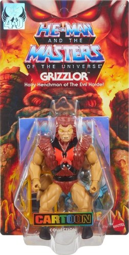 This MOTU Origins Grizzlor action figure joins the Cartoon Collection, inspired by the original He-Man and the Masters of the Universe TV series from the '80s. The hairy henchman of the Evil Horde has a vintage look at 5 1/2-inch scale, but with the modern posability of 16 movable joints. This MOTU villain comes with a Moon Mirror accessory inspired by the "He Ain’t Heavy" episode. A mini-comic is included for story context. Packaging now features thicker cardboard for in-pack display.