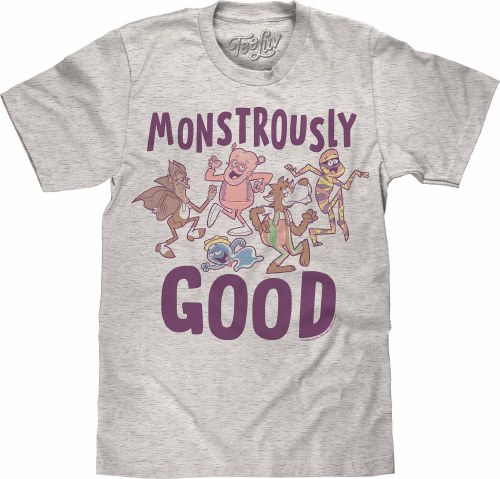 Bring the fun of your favorite cereal monsters to life with this 'Monstrously Good' tee! Featuring the iconic General Mills monsters—Frankenberry, Count Chocula, Boo Berry, and more—this fun design shows them groovin' and movin' on a comfy heather gray shirt. From your breakfast table to wherever you roam, show off your love for these spooky snack legends in style. Grab one today and let the monster mash begin!