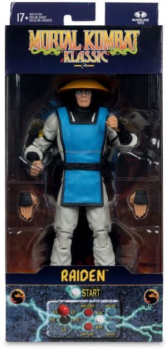 The Mortal Kombat Klassic Wave 2 Raiden 7-Inch Scale Action Figure features up to 22 points of articulation for full range of posing. This figure includes 2x alternate hands, a display base and comes showcased in a Mortal Kombat Klassic themed window box.