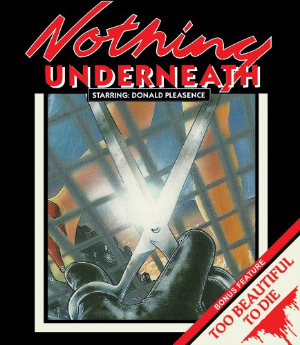 Bob Crane has long maintained a psychic connection to his twin sister, Jessica, who works as a fashion model in Milan. When Bob senses that his sister might be injured or killed, he travels to Italy to look for her, only to discover that she's vanished without a trace. Enlisting the help of about-to-retire Commissioner Danesi, Bob soon finds himself embroiled in a web of mystery and terror, when a scissors wielding killer begins to strike and all clues lead back to Jessica... A highly entertaining and unexpectedly raunchy late period giallo, clearly taking a cue from the American slasher craze, Carlo Vanzina's NOTHING UNDERNEATH amps up its mid 80s stylings and stars prolific TV actor Tom Schanley (Dexter), Danish fashion model Renée Simonsen, and Donald Pleasence (Halloween) and features a lush score by Pino Donaggio (Dressed to Kill).