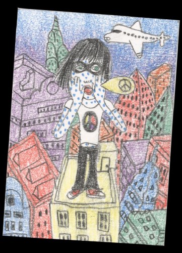 Juliette Collet tries her hand at her first full length comic story. The Peacemonger is a dispossessed, discontent reporter/narrator. Gifted or cursed with the power of invisibility, she spends her days drifting from one reality to the next, not totally detached, but wishing she were.