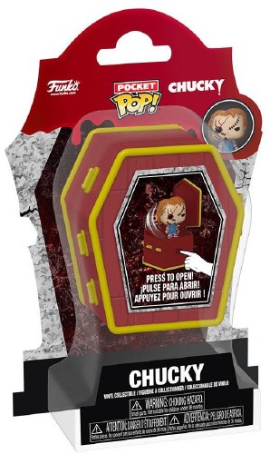 Pop open a frightfully fun surprise with Chucky! Concealed within a charming, coffin-shaped popper, Chucky is ready to appear at the push of a button! Expand your Funko Pocket Pop! collection by making this popper the next addition to your Chucky set. This Chucky Funko Pocket POPper Mini-Figure measures approximately 2 1/2-inches tall x 2-inches wide x 1 1/2-inches deep and comes packaged in a peggable blister card.