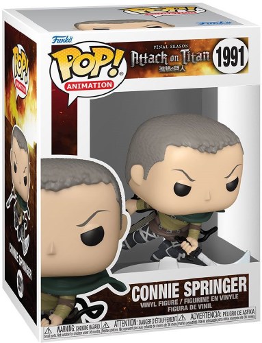 Push beyond the walls of your Attack on Titan Funko Pop! collection with Connie Springer! This Scout is prepared for battle and ready to give his heart in defense of humanity. This Attack on Titan Connie Springer Funko Pop! Vinyl Figure #1991 measures approximately 3 3/4-inches tall and comes packaged in a window display box.