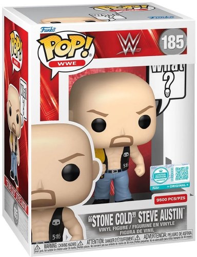 Entertainment Earth Exclusive! - Celebrate one of the most iconic Superstars in WWE history with "Stone Cold" Steve Austin! This legend features his signature ring attire, complete with the “Austin 3:16” catchphrase and skull logos, and a speech bubble that reads, “What?”. Chanting at about 4 1/2-inches tall, this WWE Stone Cold Steve Austin (What?) Pop! Sayings Funko Pop! Vinyl Figure #185 - Entertainment Earth Exclusive comes packaged in a window display box. There are 9,500 pieces of this limited edition supreme exclusive, so don't miss out and add this WWE legend to your Funko Pop! collection!