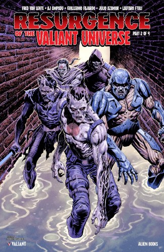 Writers Fred Van Lente (ARCHER & ARMSTRONG) and AJ Ampadu (NINJAK VS. ROKU) unite to spearhead the next chapter of THE RESURGENCE OF THE VALIANT UNIVERSE! Dr. Silk's utopian vision shatters reality with Master Darque's dark magic, unleashing global chaos. Valiant's heroes - X-O Manowar, Bloodshot, Eternal Warrior, Ninjak, Rai, and Faith-face unprecedented threats as battle lines are drawn. The dead rise to join the fight. Livewire learns of [SPOILER]'s return, Eternal Warrior takes sides, Bloodshot is outed as a traitor, and Ivar makes a crucial discovery. The universe trembles as alliances shift and the battle for survival intensifies!