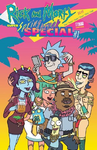 IT'S SPRING BREAK, FOR RICK'S SAKE! Slap on a Speedo and slather on that suntan lotion, because the omniverse's most dysfunctional uncle/ nephew combo is about to catch an unhealthy dose of extra-solar radiation in an absolutely gargantuan, absurdly overstuffed 64-PAGE GIANT! Aw yeah, spring break! Rick, Summer, and Morty have ventured offworld to a planet where young, sexy vacationers from around the universe come to party, cut loose, and compete in the annual Spring Break contest! While Summer has just enough self-respect to avoid vying for Ms. Spring Break, Rick doesn’t! And he’s all in on winning Mr. Spring Break. But little do our heroes know that winning the Spring Break competition comes with a steep “reward,” and if the winner refuses the reward, well, it may just unleash a swift and vicious class war between the exploited and exasperated locals and the pampered and unprepared spring breakers.