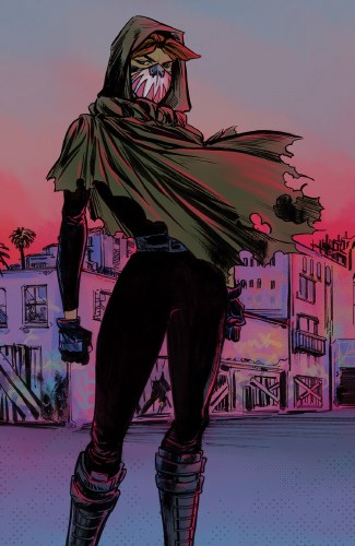 What if a contested Presidential election plunged America into turmoil? What if political violence consumed the streets? And what if a raging Supreme Court, in a strict interpretation of the 2nd Amendment, legitimized and deputized all militias, transforming the entire country into a paramilitary police state? What if a freedom fighter emerged from the chaos, raised a civilian army, and carved out a territory across the United States?... pushing out police, militias, and National Guard... enforcing its own laws... Sovereign. What if Americans refused to be governed? In this speculative fiction comic book series ripped from tomorrow's headlines, a mysterious figure named Vya Of Brightstars will rise from the crisis, but is she a freedom fighter or a terrorist? Either way, her rogue state will not just blaze a path across America, it will also inspire others to raise their own armies... some in solidarity, others in opposition. 'ROGUE STATE... is a genre known as 'speculative fiction.' Except that it doesn't seem as speculative anymore.' (-The San Francisco Chronicle) From writer Matteo Pizzolo (CALEXIT, GODKILLER) and artist Carlos Granda (PIROUETTE, CALEXIT: SAN DIEGO), comes this tale of rebelling against tyranny, reconquering stolen land, punching fascists in the face, and building a better nation.