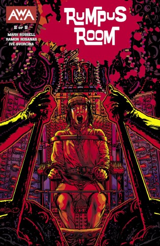 Trapped in the Rumpus Room! Detective Hernandez is trapped in billionaire Bob Schrunk’s basement prison known as the “Rumpus Room” – and while she’s stuck there, she’s going to get to know her fellow inmates and learn how they had wronged Schrunk and earned their fate. Meanwhile, Schrunk is losing control of his tech company and must consolidate his position with the board of directors. Plus, what’s the secret of the billionaire's collection of bizarre art? Eisner Award-winning writer Mark Russell (NOT ALL ROBOTS) and artist Ramon Rosanas (YEAR ZERO) deliver a groundbreaking and exciting new title!