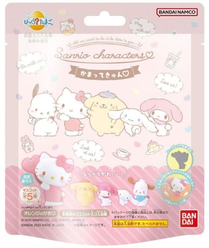 Relax with your favorite Sanrio Characters! These cute Sanrio Bath Bombs are the perfect way to make taking a bath even more of a treat. Put one bath bomb into a nice warm bath and watch it fizzle away to reveal a cute Sanrio friend! This set comes with adorably posed characters that'll just tug at your heart strings. Characters possible: Hello Kitty, Pochacco, Pompompurin, Cinnamoroll, My Melody, and a secret character! Collect all 6. Bath Bomb is Orange Scented.