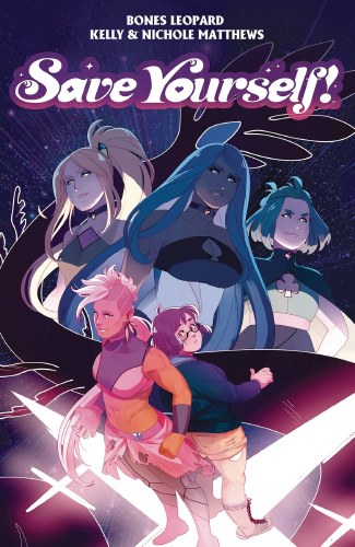 * Aoe, Thel, and Gen, better known as The Lovely Trio, first burst onto the scene five years ago when they saved Earth from a surprise space monster attack. * Everyone idolizes them as super-heroic pop icon magical girls, including Gigi, whose brother died as a bystander in one of their battles. But when Gigi witnesses the Lovely Trio battling a monster firsthand, she sees something that causes her to question everything she thought she ever knew about her heroes, and the 'monsters' they fight, who may not be monsters after all! * What she learns just might save the world, but only if she can survive the Lovely Trio herself in this magical new graphic novel from the team behind Pandora's Legacy, writer Bones Leopard (Identical) and artists Kelly & Nichole Matthews (Just Beyond). * Collects Save Yourself! #1-4.