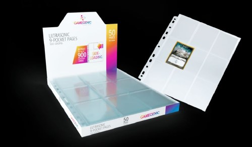 High-quality 9-pocket pages for standard- and Japanese-sized cards, made from extra clear polypropylene. Due to the versatile 11-hole spine these pages fit in almost all standard-sized ring-binders. The pockets are loaded sideways and will protect even double-sleeved cards perfectly. Welded joints, made with ultrasonic technology, provide strong and precisely measured card pockets.