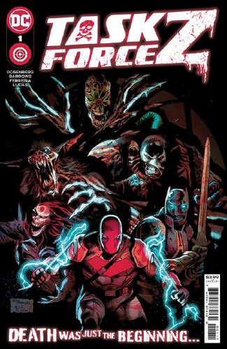 In life, they’ve terrorized the people of Gotham. Now, they are Gotham’s last hope. Task Force X saw villains working their way to freedom. Task Force Z will see dead villains working for a new chance at life! On A-DAY, the attack on Arkham Asylum left hundreds of Gotham’s most cunning and deranged criminals dead…now, a mysterious benefactor has activated the government’s TASK FORCE clause to bring them back as the ultimate army of the night! To lead this team of the undead, only a person who knows exactly what it feels like to be brutally murdered and brought back to life can handle the job…enter: RED HOOD. But when Jason Todd unravels the mystery surrounding Task Force Z’s creation, will he try to destroy it…or embrace it? BANE. MAN-BAT. THE ARKHAM KNIGHT. SUNDOWNER. MR. BLOOM. RED HOOD. THEY ARE TASK FORCE Z, AND DEATH WAS JUST THE BEGINNING...!