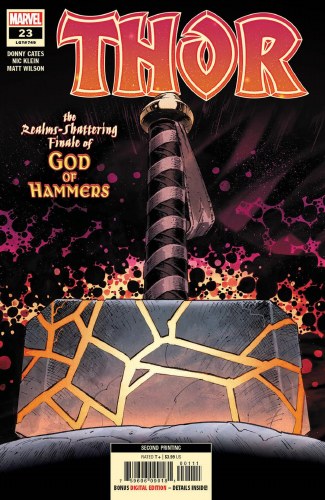 It's the final chapter in Thor's brutal war against the God of Hammers, and after a horrific and tragic loss, Thor is more determined than ever to finish the fight, once and for all. But can he triumph without Mjolnir at his side? Either way, by issue's end, Thor's life will be irrevocably changed!